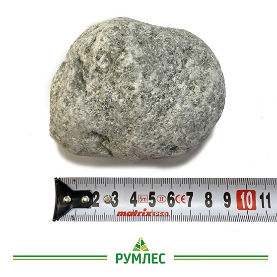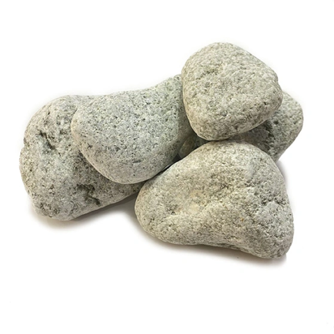 У шлифованного камня округлые формы и гладкая поверхность, благодаря чему он эстетично смотрится вверху открытой каменки.