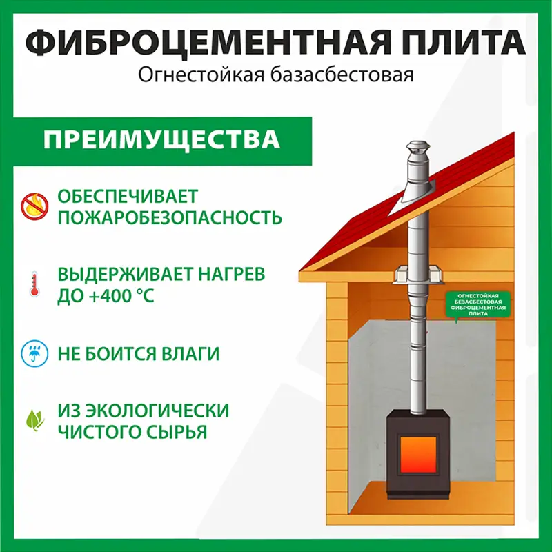 Экраны печей, каминов, объекты с повышенными требованиями к пожарной безопасности.