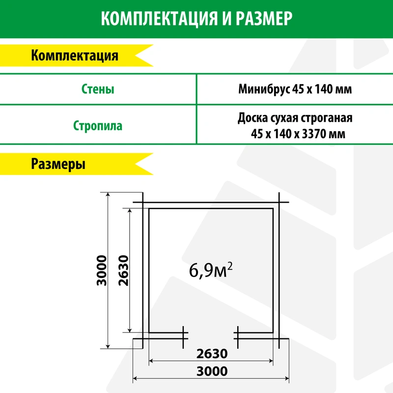 Внешний — 3000*3000мм, внутренний — 2630*2630мм