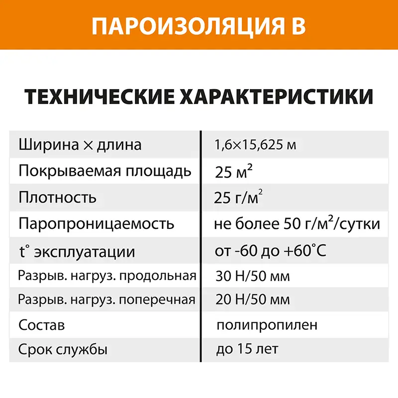 Пароизоляционная пленка B защищает утеплитель от паров, поступающих изнутри помещения.